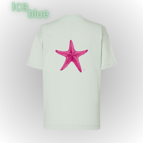 Camiseta básica unisex  de manga corta con print en la espalda de estrella en color rosa