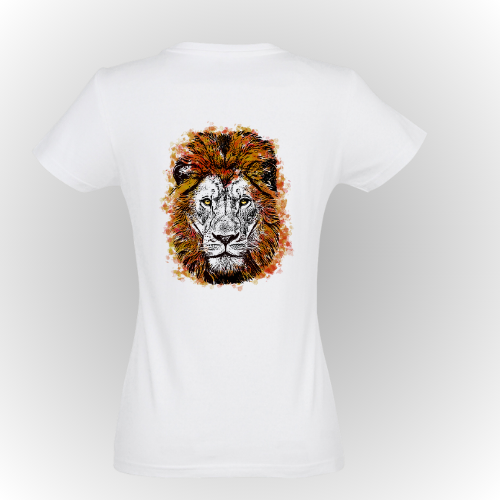 Camiseta  de mujer algodón orgánico y de manga corta,  print en la espalda  de león pincelado