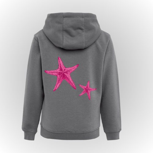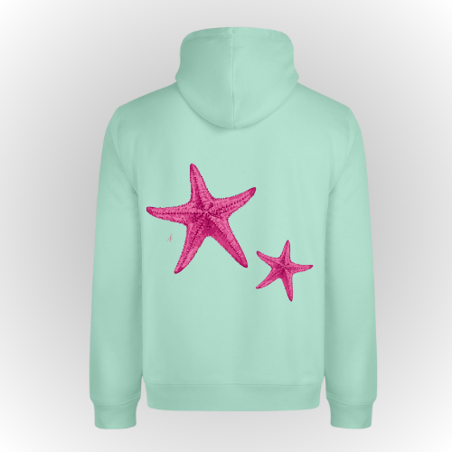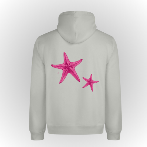 Hoodie unisex con print en la espalda de estrellas de mar en color rosa