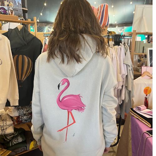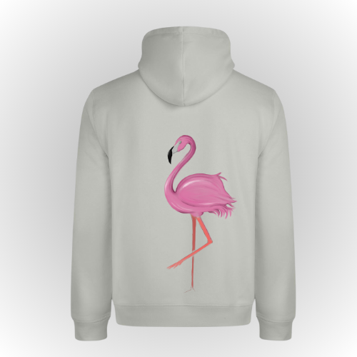 Hoodie unisex  con print en la espalda de flamenco rosa