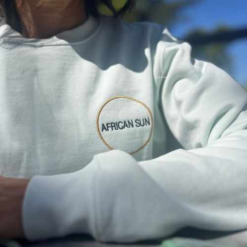 Sudadera unisex color azul crema, con print  en la espalda de estrella en color azul.